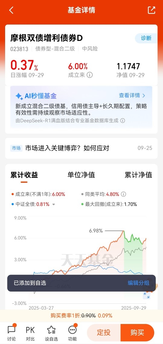 市场的走向更加趋向于发展“慢牛”格局,但风格切换与行业轮动比较迅速,这会更大程度地加大投资难度,在近期的投资中我也逐渐发现了像摩根双债这样一类固收+产品的魅力,既够稳又能赚,受市场波动的影响可控,值得被我考虑进后续的投资布局规划中,相信在我的底仓配置中,摩根双债增利债券也会像近半年的表现一样,为我带来稳稳的幸福~@摩根资产管理