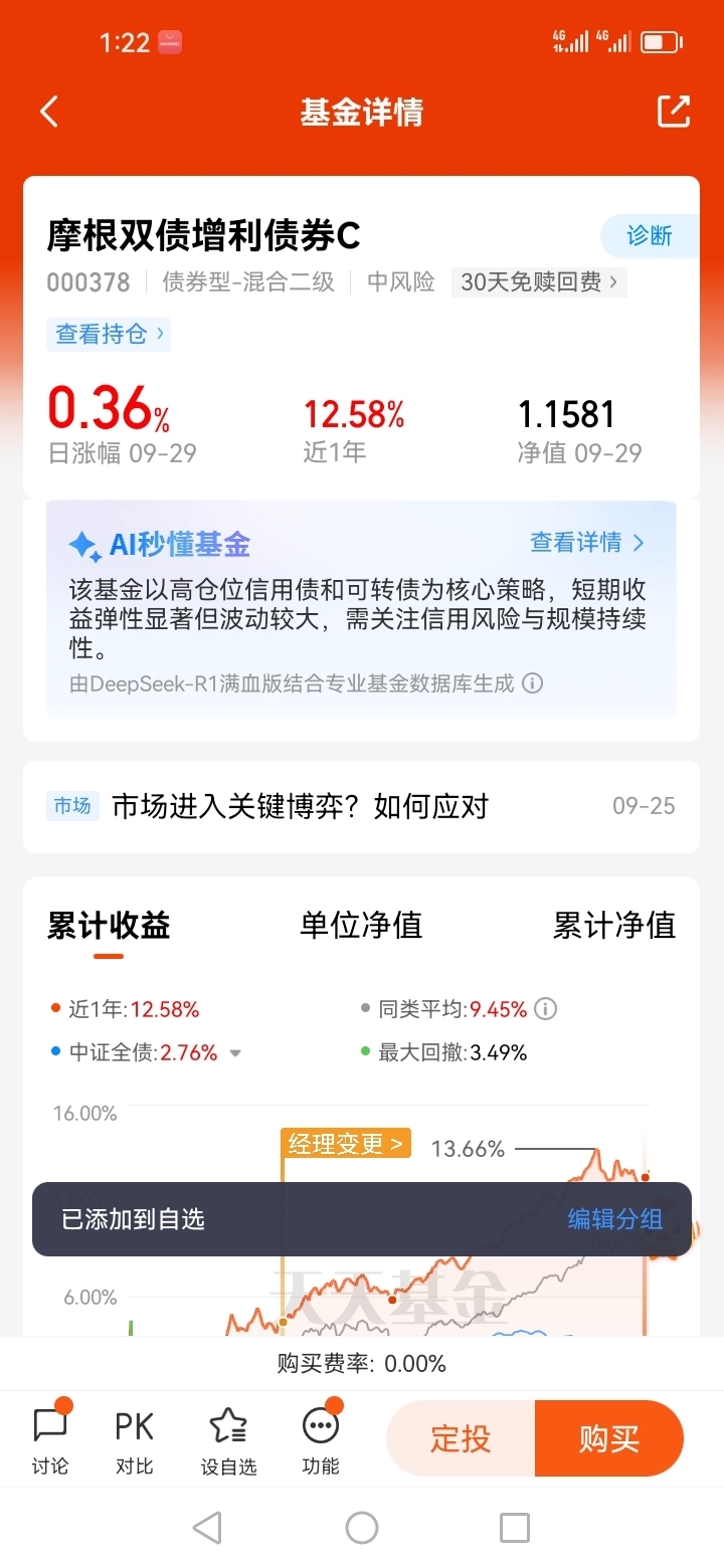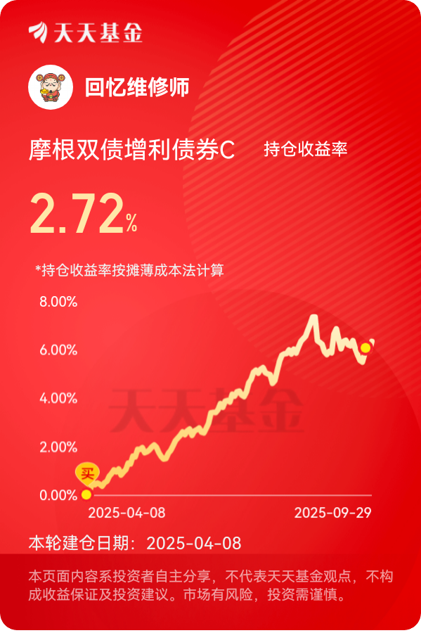 所以我选择了摩根双债增利债券C(000378),,因为它主要投资的是债券类资产,同时投资部分带有权益类性质的可转债,这样可以做到攻守兼备。@摩根资产管理