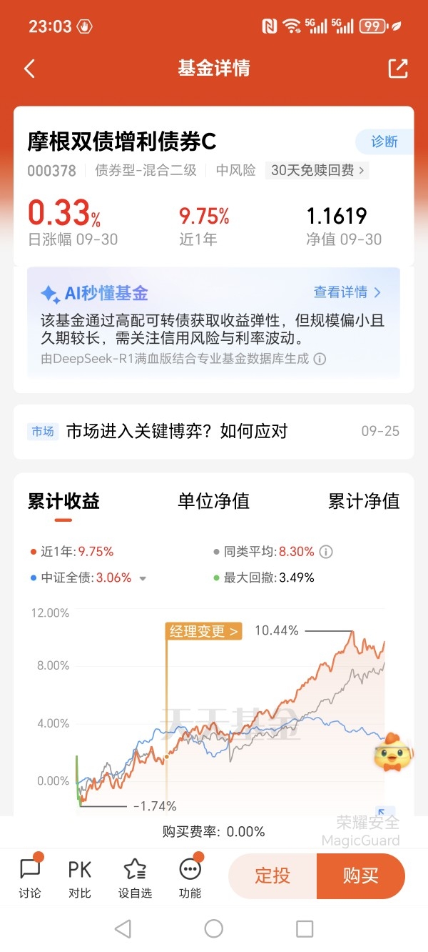 在当前复杂多变的市场环境下,投资者愈发青睐能够平衡风险与收益的产品。摩根双债增利债券基金作为一只混合二级债基,凭借稳健的业绩表现,逐渐走进投资者的视野。这只由周梦婕经理管理的基金,近一年实现了9.75%的年化收益率,远超同类平均水平,展现优秀的收益能力。从投资组合来看,该基金可转债占比50.64%,构成组合的弹性部分;信用债占比45.45%,作为收益的稳定器;利率债占比5.03%,提供流动性支持。这种配置体现了基金管理人对不同债券品种特性的深刻理解。可转债部分采取"双低策略",精选价格低于110元、溢价率小于20%的品种,既保留了下跌保护,又具备上涨潜力。信用债部分则严格控制信用风险,主要配置中高等级信用债,确保基础收益的稳定性。收益表现方面,该基金不仅近一年收益率领先同类,在不同市场环境下也展现出持续的赚钱能力。2025年一季度,受益于可转债市场的良好表现,基金单季度涨幅超过5%;而在二季度债市调整中,基金仍实现0.3%的正收益,展现出较强的适应能力。基金的超额收益中,62%来自可转债的灵活操作,38%源于信用债的稳定票息,这种多元化的收益来源确保了基金在不同市场环境下都能找到创造回报的机会。风险控制是这只基金的又一亮点。3.49%的最大回撤水平,优于82%的同类产品,体现出基金管理人对风险的高度重视。更值得关注的是,基金在出现最大回撤后仅用62天就完成修复,这一速度显著快于市场平均水平。这样的回撤控制能力,源于基金经理对久期的严格管理,将组合久期控制在2年左右,远低于同类产品的4-5年,有效降低了利率风险。同时,基金还建立了完善的风险预警机制,定期对持仓品种进行压力测试,确保组合在各种市场情景下的稳健性。基金经理周梦婕的投资理念在这只基金上得到充分体现。她拥有丰富的固收投资经验,2011年开始证券从业,历任研究员、交易员等职位,2021年加入摩根基金管理。她的投资风格可以概括为"稳健中寻求突破",在严格控制信用风险的前提下,通过可转债增强组合弹性。目前她管理的资产规模约40.59亿元,从业年均回报达5.76%,展现出持续创造稳定回报的能力。展望后市,当前市场环境对"固收+"产品较为有利。债券市场方面,利率大幅上行的空间有限,票息策略依然有效;权益市场方面,经过前期调整,部分优质标的已进入合理估值区间。在这样的背景下,摩根双债增利基金采用的"固收+"策略,既能通过债券资产获取基础收益,又能借助可转债分享股市上涨红利,较好地平衡了风险与收益。对于投资者而言,这类"固收+"产品可以作为资产配置的重要组成部分。它既能够规避纯债基金在低利率环境下的收益不足,又能够降低股票型基金的高波动风险,是当前市场环境下较为理想的选择。在市场波动加大的情况下,基金展现出的良好回撤控制能力和快速修复能力,更能满足投资者对稳健收益的追求。