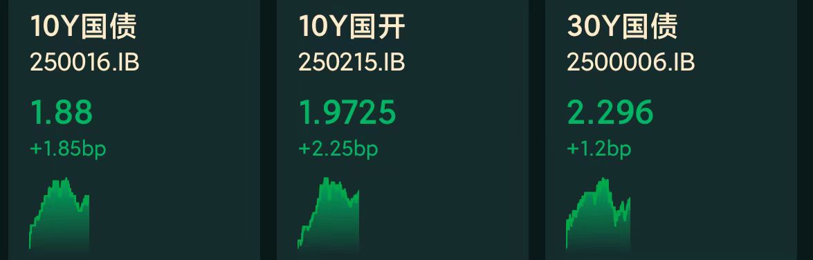 十年期国债收益率:1.88%,+1.85BP(国债收益率越跌,债市越涨)