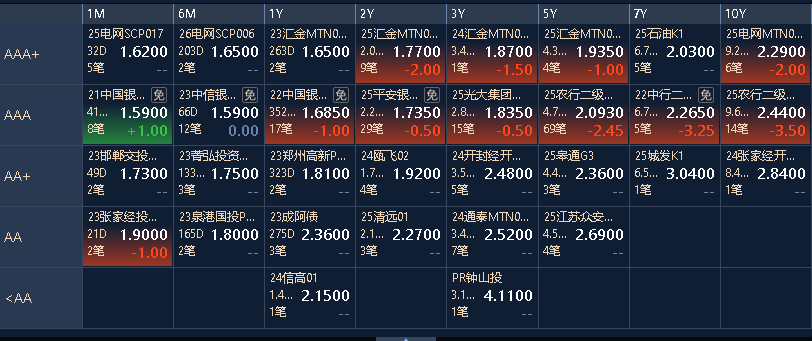 债市延续涨势,现券收益率普遍下行1-2BP,长债利率进一步试探区间下沿。30Y国债行情走强,一举突破近期震荡下沿,领涨全场,日内最低至2.222%, 10Y国债快速下行触及1.8%,仍未能下破,在此位置已经多次遇阻,后续还需要其他利好才能促进,30Y-10Y国债利差压缩至42BP左右。