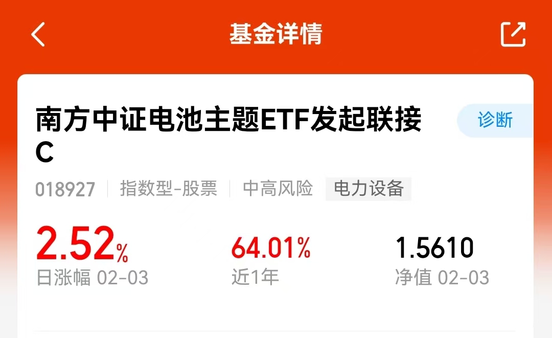 之前行业内卷,价格战打得谁都没利润,现在反而冷静下来了,资源向头部集中。$南方中证电池主题ETF发起联接C$ 持仓的公司基本都是细分领域龙头,近一年64.49%的涨幅说明资金认可这种格局。固态电池虽然是未来方向,但现有的电池需求也没垮,电动车销量还在涨。基金跟踪误差控制得不错,吃板块收益吃得比较准#2月基金投资策略#