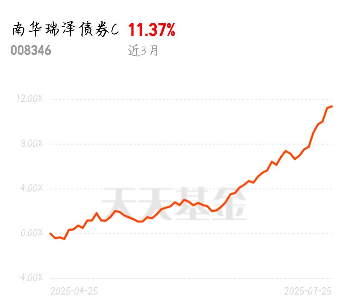 带008346走势图想赚点超额收益,又不想冒太大险,南华瑞泽债券C正合适。近一年