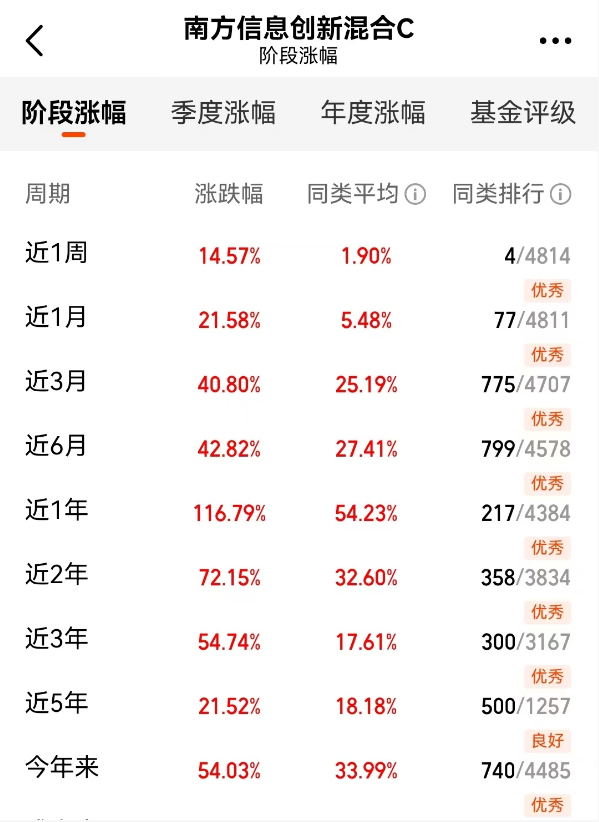 我关注$南方信息创新混合C$(007491)有一阵子了,它可不是瞎炒,而是实实在在投那些半导体产业链上的公司。现在这个环境,这个领域特别受关注,一方面行业自身的需求在恢复,另一方面也有长远的发展逻辑。近一年116%左右的年化收益率就是最好的证明。我觉得现在配置一点,正是时候。#创业板指创阶段新高 致敬“924行情”#
