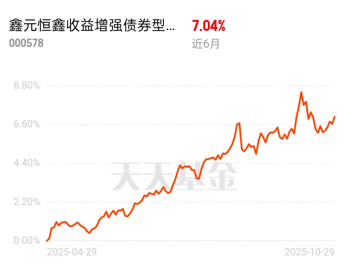 好多人吐槽理财要么收益低,要么风险高,想找个中间档太难了。其实鑫元恒鑫收益增强债券A就挺符合,近3个月有2.91%的收益,比活期存款高不少,风险还比股票型基金小,不想冒大险又想多赚点的,选它准没错。