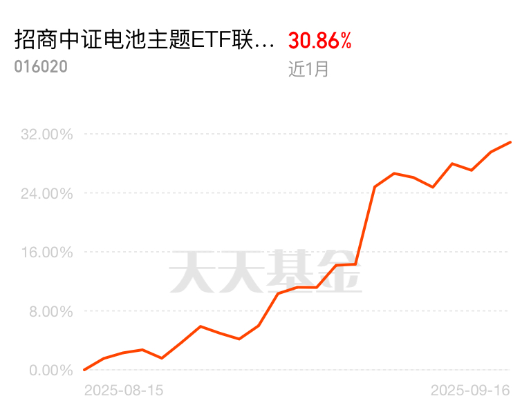 最近商用车爆发带起电池,26 年需求增 50GWh,宁德还给指引。招商中证电池主题 ETF 联接 C 近一月涨 30.86%,储能超六成,当前上车划算。