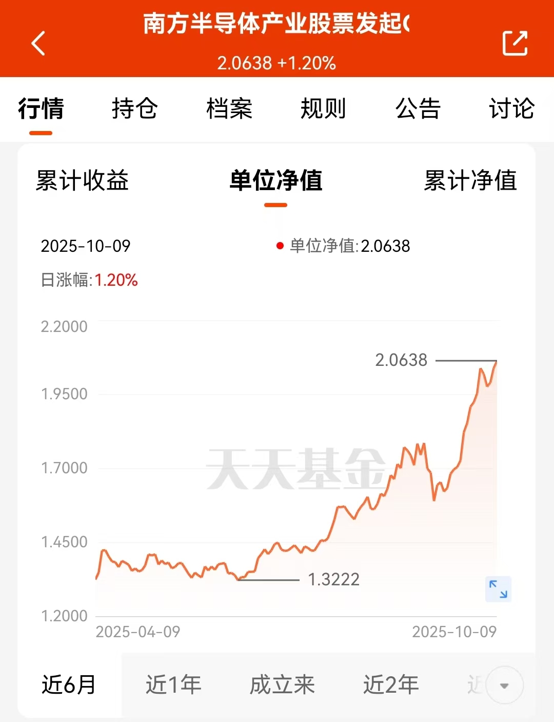 我当初选$南方半导体产业股票发起A$(020553),就是看中它不只盯着一个环节。它是把半导体这条链上的关键部分都覆盖了,特别是那些在自给路上不断取得进展的领域。这样东边不亮西边亮,风险相对分散。结果证明我是对的,近一年78%、近三个月44%的收益,同类榜首。现在行业景气度确实在起来,各种产品的价格也有上调的动静,加上内部供应链完善的趋势不可逆,这基金的双重动力十足啊。未来的市场空间,想想都觉得大。#10月基金投资策略#