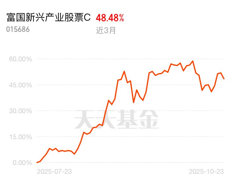 今天大盘太给劲儿了,三大指数全都往上走,科技板块更是一路领跑,看得人心里发烫!富国新兴产业股票 C 真是踩准了节奏,专门布局半导体和 AI 硬件这些热门赛道,近一年直接赚了 74.83%,今天估值又大涨 2.55%。这行情看着就有戏,果断加仓跟上,就等它继续爆发吃肉了!