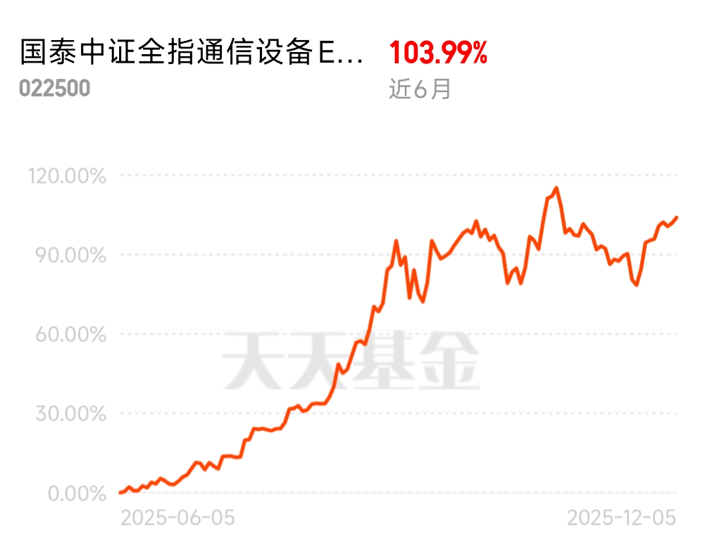 前海开源新经济A覆盖了新能源、科技等新经济领域,而AI无疑是其中爆发力最强的引擎之一。为了强化这方面的配置,我选择了国泰中证全指通信设备ETF联接E,它专注于AI算力基建,海外核心资产占比超80%。这只基金展现出强大的弹性,今日预估净值大涨超5%,近半年回报104%。在谷歌、亚马逊、阿里等巨头全力冲刺AI的背景下,算力需求具有长期性。将其纳入与新经济主题基金的组合,可以有效提升在AI基础设施领域的暴露,捕捉结构性增长机会。