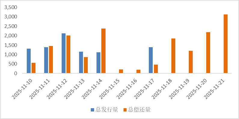 同业存单发行:本周(11月17日-21日)存单到期9209亿元,较前一周的7265亿元进一步提升。