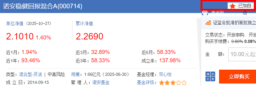 看好 AI 算力是一回事,选对基金是另一回事。市面上 AI 主题基要么波动太大,要么持仓太杂,直到我翻了诺安稳健回报混合 C(002052)的三季报,才发现这只 “披着稳健外衣的成长基” 不简单。持有 3 个月下来,净值涨了 16.8%,最大回撤才 8.2%,比我手里的纯科技基稳多了。