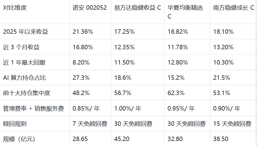 三、同类对比:诺安 002052 凭啥在稳健型 AI 基里脱颖而出?