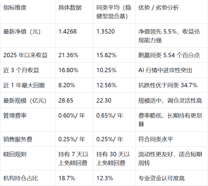这只基是 “稳健型成长基”,适合做组合里的 “进攻补充”,不是让你全仓押: