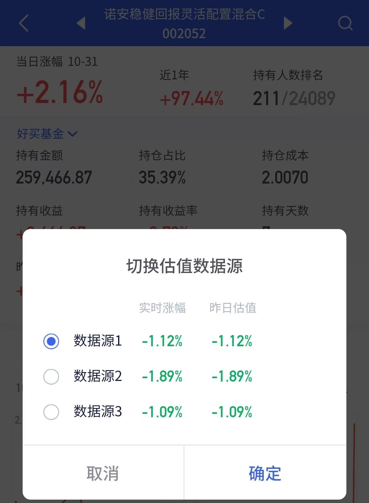 已经做好回调准备了,买了20万的诺安稳健回报,周五净值给了一个大大的惊喜,一开始的净值预估都是负收益1个点以上,