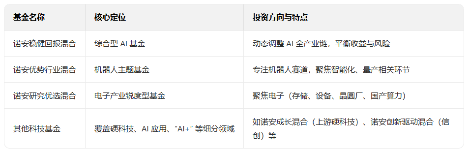 邓心怡管理的基金及诺安整体科技产品线分工清晰,投资者可按需选择: