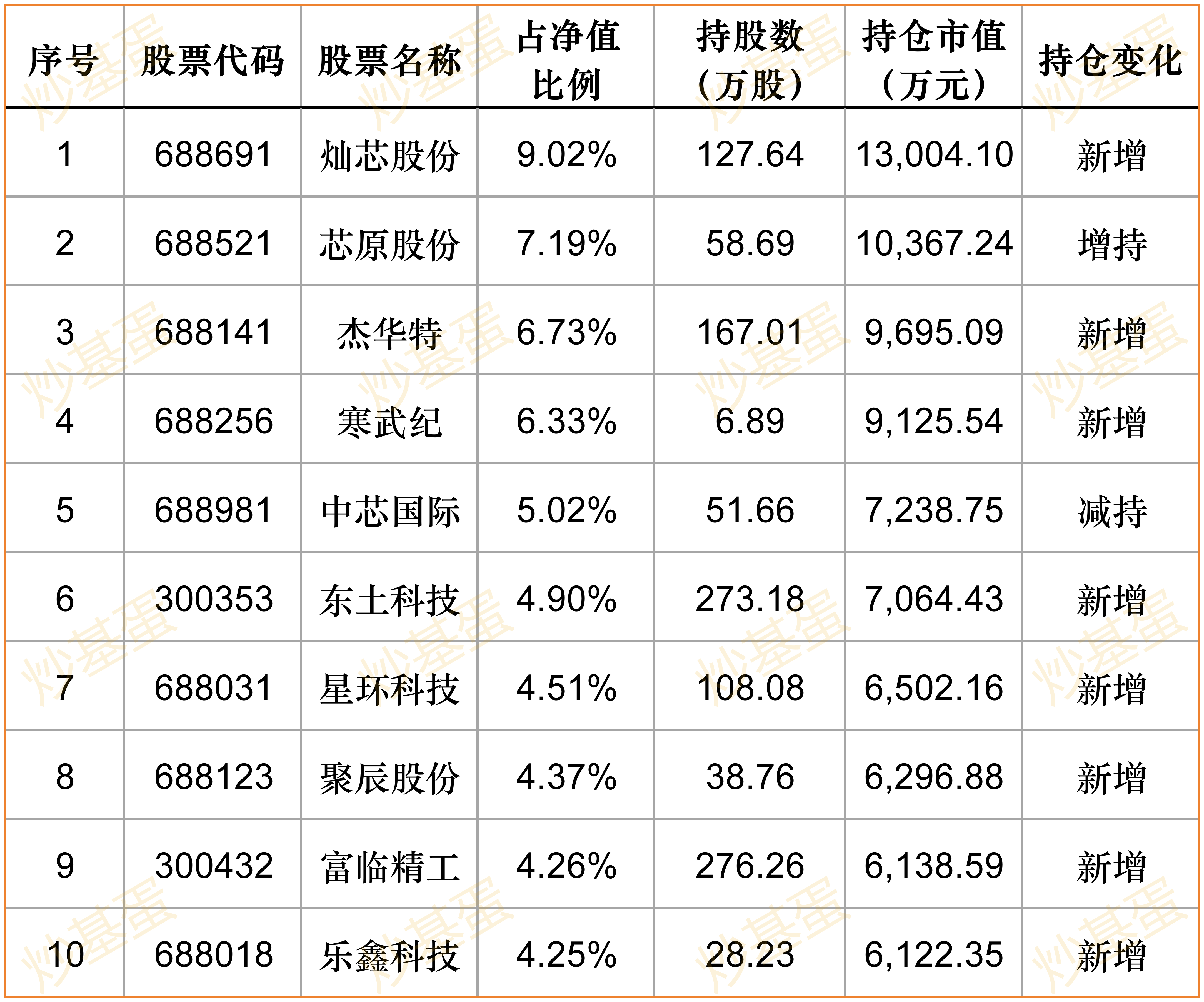 从持仓看,主要集中在AI产业链,前十大股占比56.58%,持股相对集中。三季度持仓调整较大,从基金季报里也能看出,“三季度聚焦于算力领域国产替代、ASIC方案的投资机会,以及软件端推理需求受益和产业应用机会。”