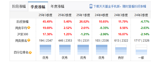从阶段性四分位图则可以看出,该基金自去年4季度以来,涨势均处于优秀象限。