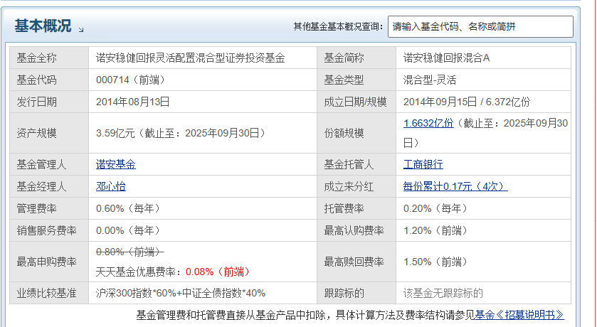 核心二:诺安稳健回报混合A(000714)产品介绍及深度评测
