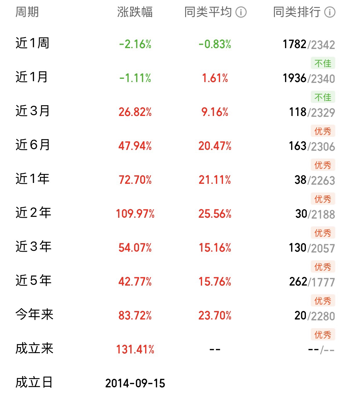 优秀的管理能力,落实到诺安稳健回报的业绩表现上自然而然是非常亮眼了。邓心怡经理2023年六月份开始接手管理以来,两年多的时间,其A类份额累计涨幅竟已高达51.45%,而同期业绩比较基准只涨了18.07%,跑赢业绩比较基准33.38%。从近两年、一年、六个月的表现来看,涨幅分别为109.97%、72.70%、47.94%,均大幅度跑赢同类平均的25.56%、21.11%、20.47%,同样上超额收益率明显,并且还都位于【优秀】评级!当然,过去表现好不代表未来一定好,但至少说明基金经理在把握科技这条主线上,目前做得还不错。