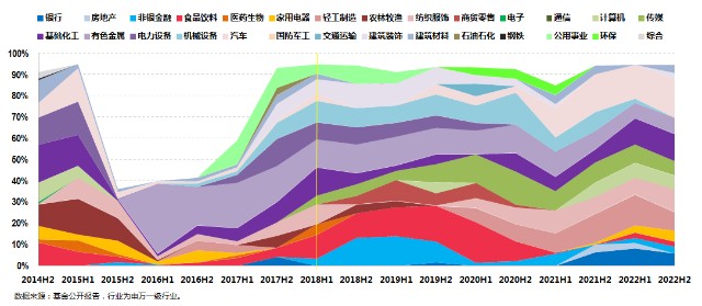 整体而言,组合在行业层面上的配置较为均衡和分散,单一行业的配置比例基本不超过20%,这一点在2018年之后更为明显。