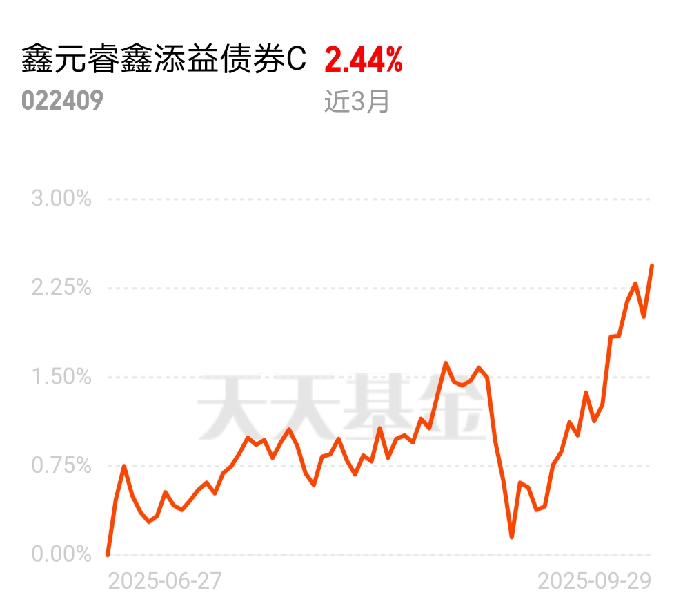 这阵子债市行情不错,稳健型基金收益都挺可观。鑫元睿鑫添益债券C近3个月2.44%