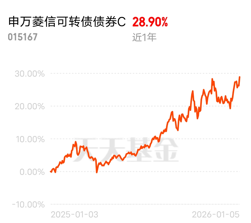2025 年中证转债指数涨幅超 18%,转债在震荡市中表现稳健。$申万菱信可转债债券C$ 近 6 月 1986 个蛋,近一年涨 28.9%,股债双栖有利息有价差,覆盖电池、制造业赛道,近期排名同类前列,收益比同类平均高很多。