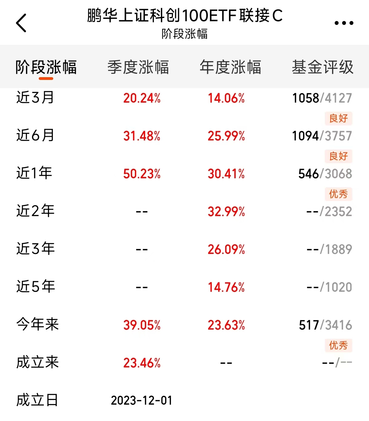是不是觉得科创板机会多,但公司研究起来太费劲?那就换个思路,直接关注指数产品。$鹏华上证科创100ETF联接C$(019862)跟踪的科创100指数,由科创板中流动性较好、市值中等的公司组成,避免了过度集中于某个单一行业的可能性。这种分散化的特点,或许能让参与过程更踏实一些。产品操作也方便,适合长期跟踪和分批布局。#黄金突破4300美元!美银:明年5000#