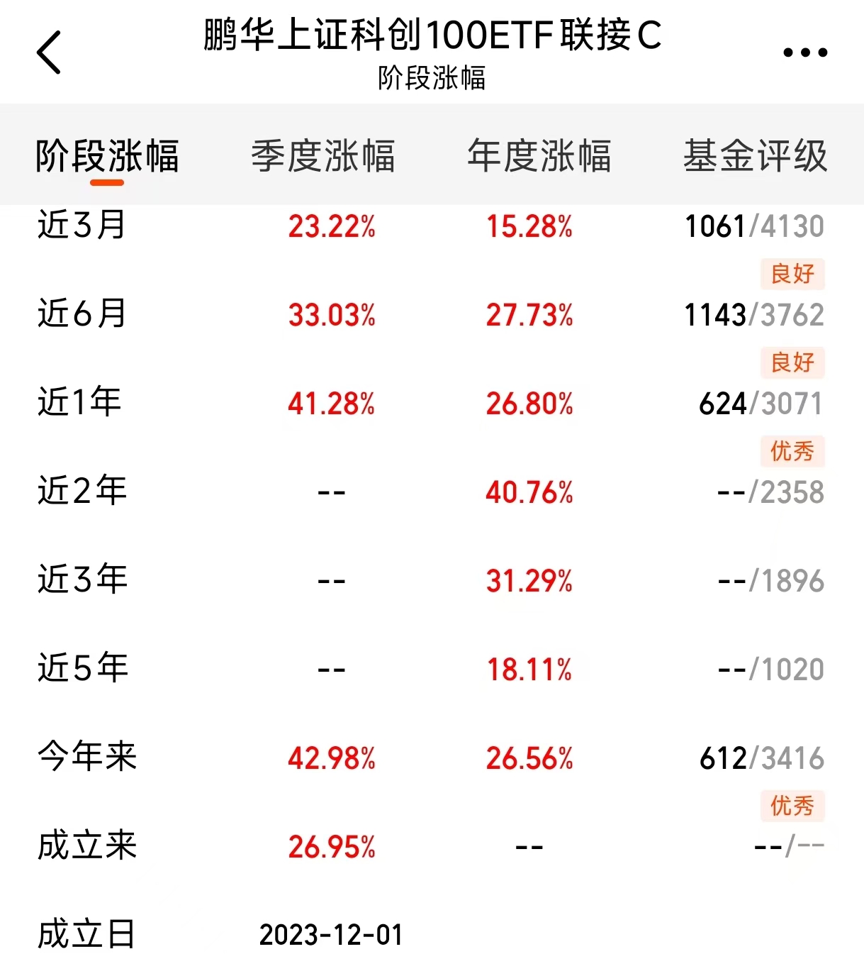 行情来了,跟上节奏而不是自作聪明。科创板近期明显受到资金青睐,相关指数产品规模增长迅速。$鹏华上证科创100ETF联接C$(019862)这样的基金,背后有专业团队管理,能紧密复制指数表现。科创100指数历史数据显示,其在上涨市中具备较强弹性,中长期业绩领先主流宽基。对于普通投资者而言,选择这类产品参与市场,本质是借助专业工具化解选股难题,提高投资效率。#CPO、PCB大反攻!行情空间有多大?#