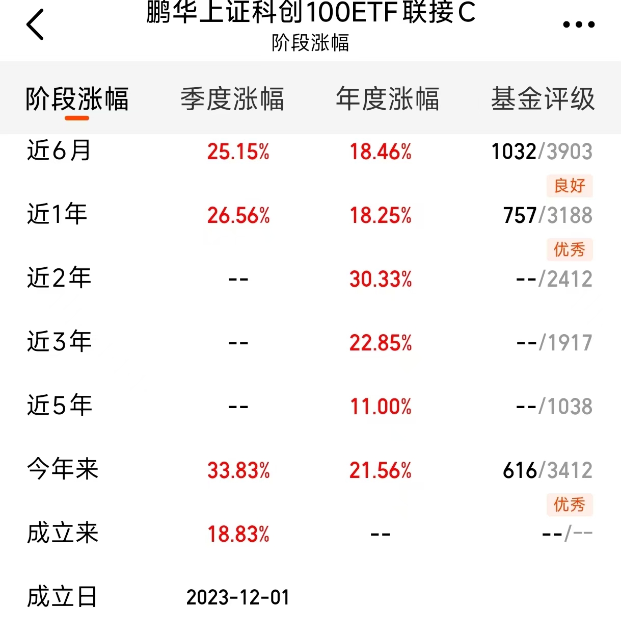 看看近期的市场,科创板的活力又被激发了。$鹏华上证科创100ETF联接C$(019862)这个产品背后的指数,由科创板中多家代表性公司构成,这些公司普遍注重技术创新。在市场整体向好的背景下,这类产品的吸引力增强。业绩数据显示,该产品近一年实现了较高的正回报,远超同类平均,近一年的夏普比率也表现优异,说明其历史风险调整后收益具有竞争力。对于有意参与科创板投资、分享其成长红利的投资者来说,这类产品或许是一个实用的工具。#观点搭子团火热招募中!#