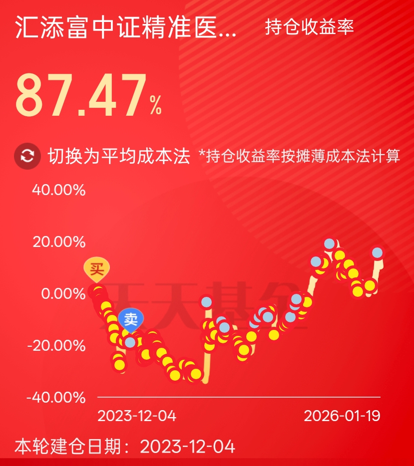$汇添富中证精准医疗指数(LOF)C(OTCFUND|501006)$ 已经投了两年多,通过反复低吸高抛,持仓成本降到只有0.54,比2024年最低点还要低,这么低的成本,根本不怕它大幅震荡。后面再跌一跌,准备继续回补。