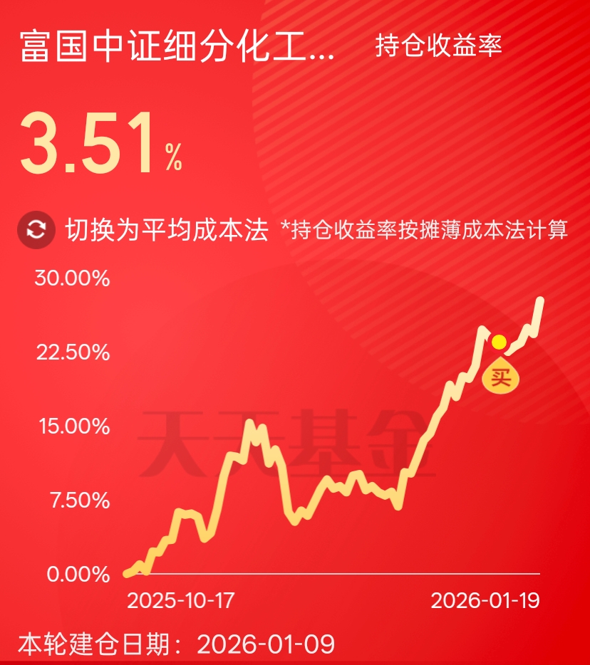 $富国中证细分化工产业主题ETF发起式联接C(OTCFUND|020274)$ 上车后本打算回调时低吸的,但它就是不回调,反而越涨越高,主要是行业基本面预期回暖态势明朗,市场高度认可,行情也就走得比较强。