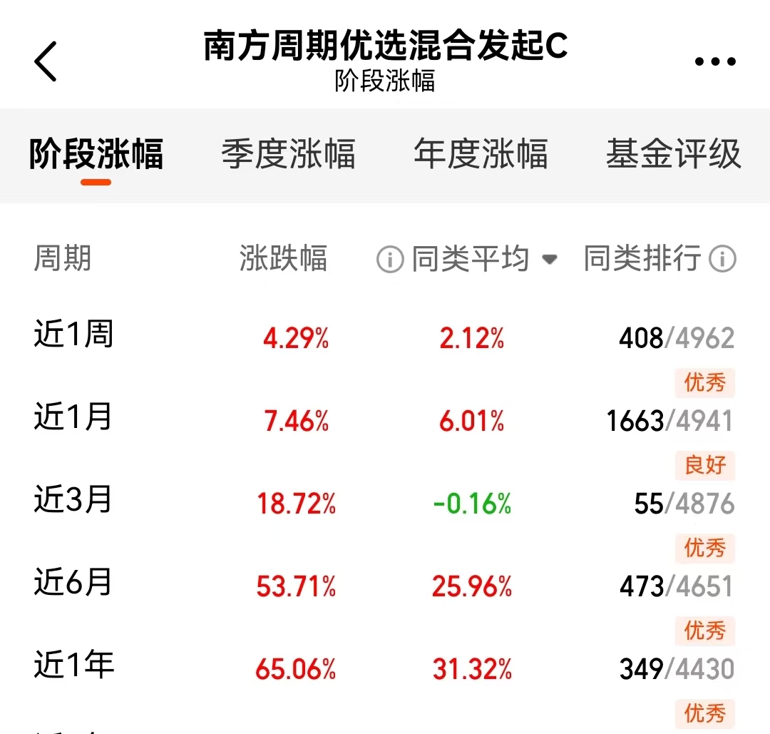 今天$南方周期优选混合发起A$(021711)表现还可以,我自己也投了点。这基金近半年涨了54%。我感觉现在不少资金在从别的地方流出来,可能会找些位置还不算高的方向,这种周期的也许能轮到。看它今天还行,就买了点看看。#白银LOF溢价近70%临停,套利风险激增#