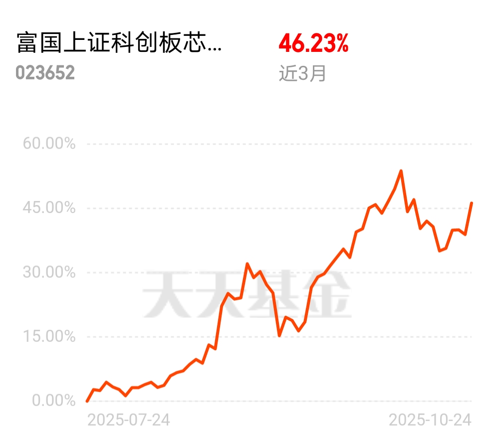 我拿天弘沪深300打底,又配了点富国科创板芯片C近3个月涨了40%,跑赢一堆同类