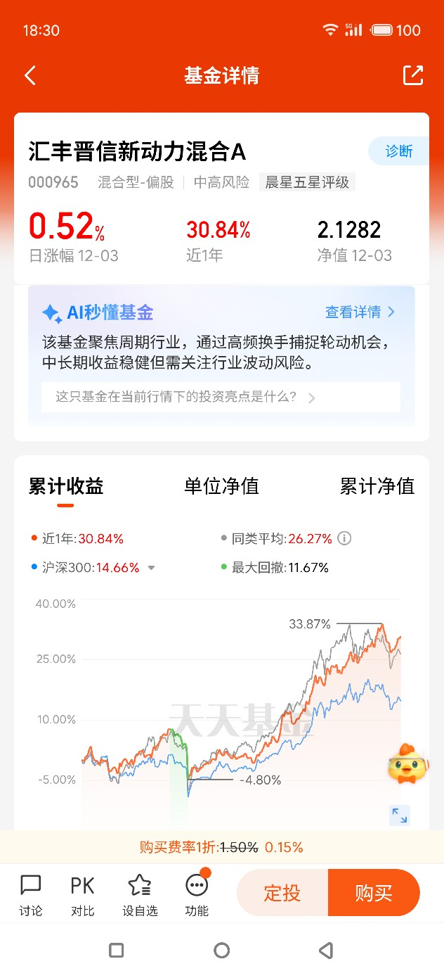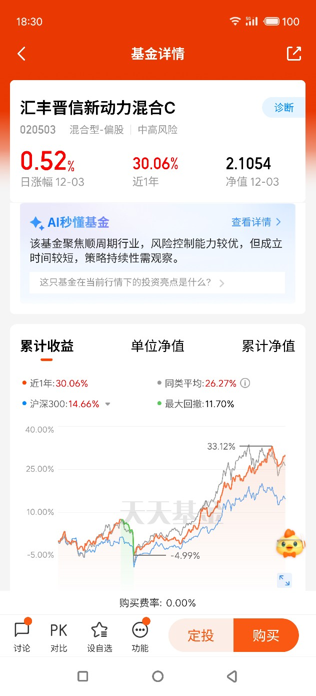 而汇丰晋信新动力混合A,正是我在筛选超额收益基金时发现的“宝藏”。这只基金过去3年的超额收益达到27.42%,业绩排名跻身同类前2% ,更难得的是,它的最大回撤显著优于同类平均水平,在市场下跌时展现出了较强的抗跌性。从持仓来看,基金布局了制造、消费、金融等多个行业,均衡的配置思路能有效分散单一板块的波动风险,这在板块轮动加速的当下,无疑是给投资者吃下了一颗定心丸。基金经理通过“成长性-估值指标”精选个股的策略,也让它在把握产业升级红利的同时,避开了高估值的陷阱,这种兼顾成长与稳健的风格,恰好契合我对长期投资的期待。