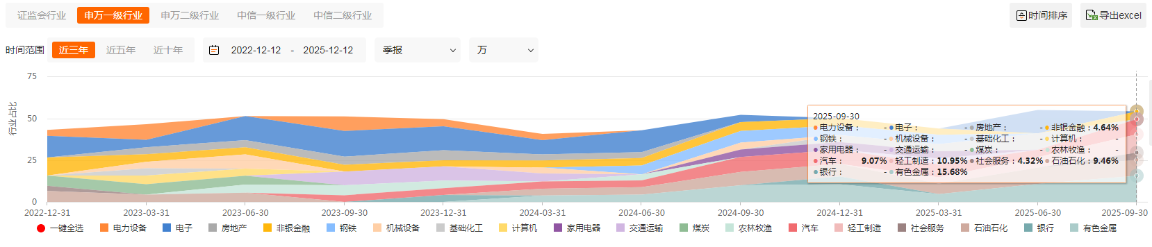 持仓结构的适应性调整。通过分析基金的持仓变化,可以看出其在应对市场波动时的策略调整。2025年三季度,基金股票仓位继续维持在92.16%的高位,显示出基金对权益资产长期价值的信心。但在具体配置上,基金进行了优化:减持了部分涨幅较大的TMT股票,增持了估值合理的周期股和消费股;降低了部分高贝塔股票的仓位,增加了防御性较强的大盘蓝筹股。这种"保持高仓位、优化结构"的策略,既不错过市场上涨机会,又能在下跌时减少损失。