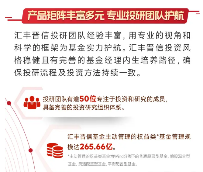 第二,强大的研究团队支撑。汇丰晋信基金拥有超过50人的投研团队,其中权益研究团队由6个专业小组(总量价值组、制造组、周期组、科技组、消费组、医药组)超20位研究员组成。这种专业化分工和团队协作,为基金经理提供了强大的研究支撑,确保了投资决策的科学性。