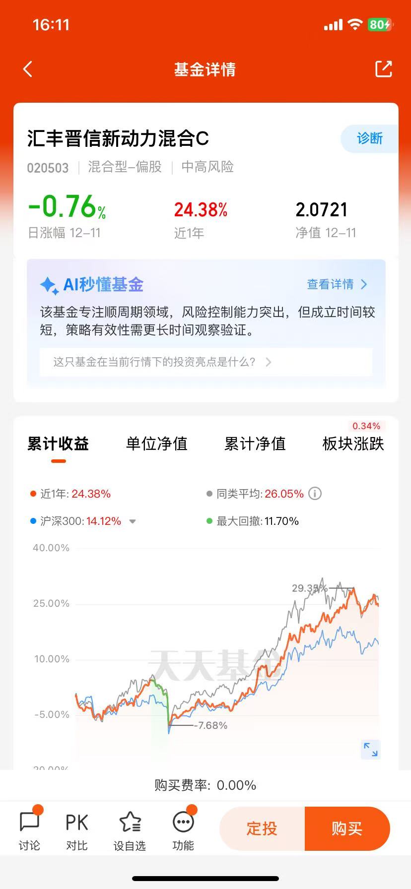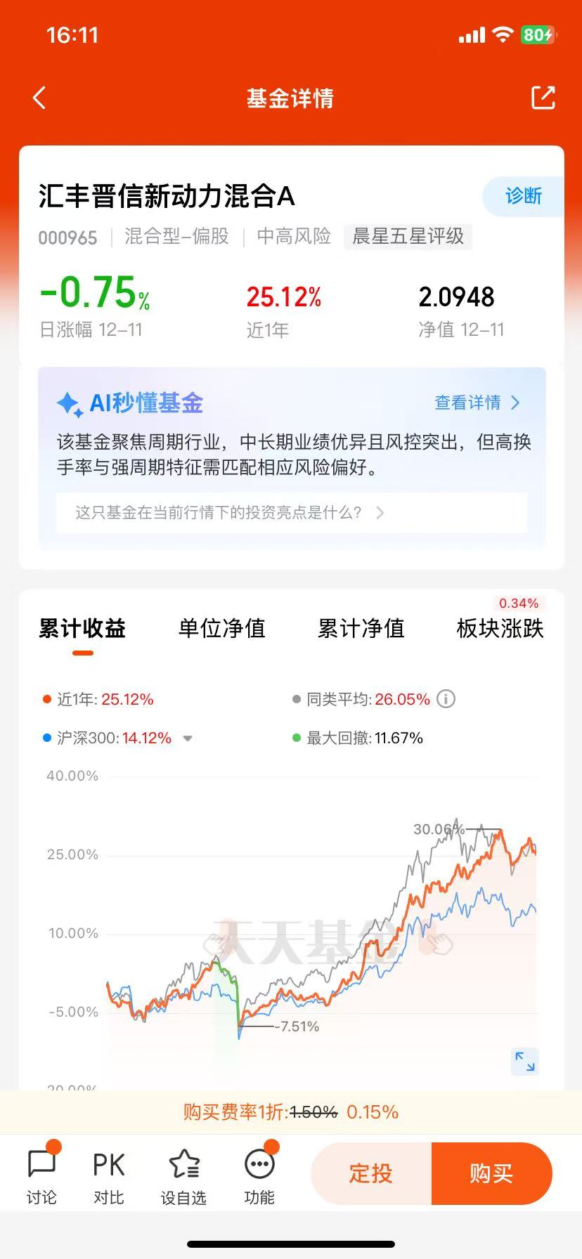第三,最大回撤控制良好。该基金近一年最大回撤11.67%,优于81%的同类基金。在2024年市场波动加大的背景下,这一指标尤为重要,体现了基金经理优秀的风险控制能力。