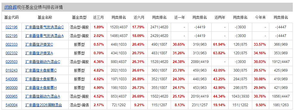 管理的其他基金业绩表现。除了汇丰晋信新动力混合A,闵良超还管理着其他4只基金,各有特色且业绩不俗: