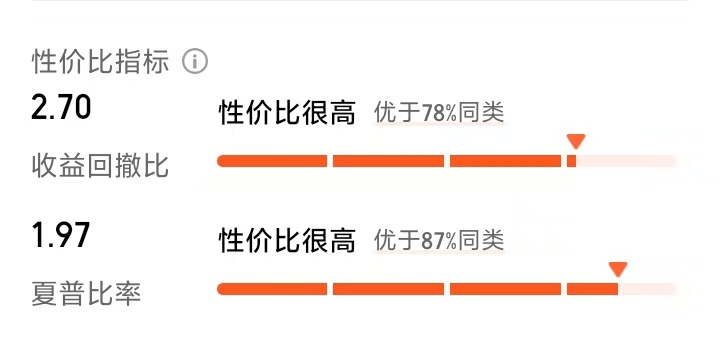 夏普比率:近一年夏普比率1.97,由于87%的同类基金,表明单位风险获得的回报优秀。