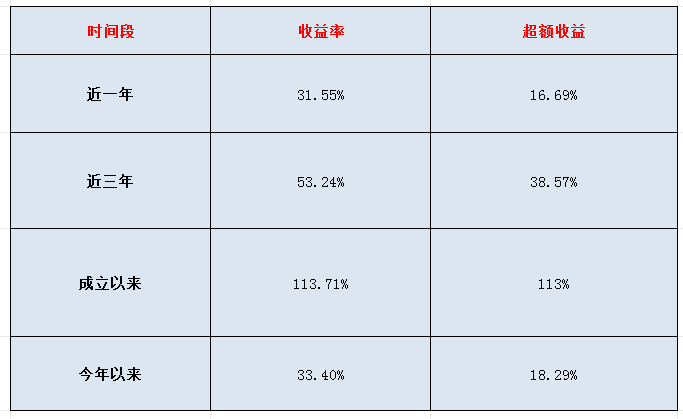 超额收益显著:成立以来超额收益113%,证明优秀的主动管理能力