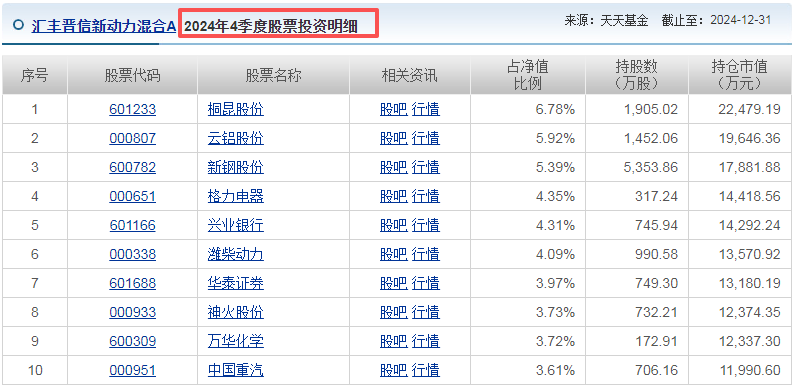 重仓股: