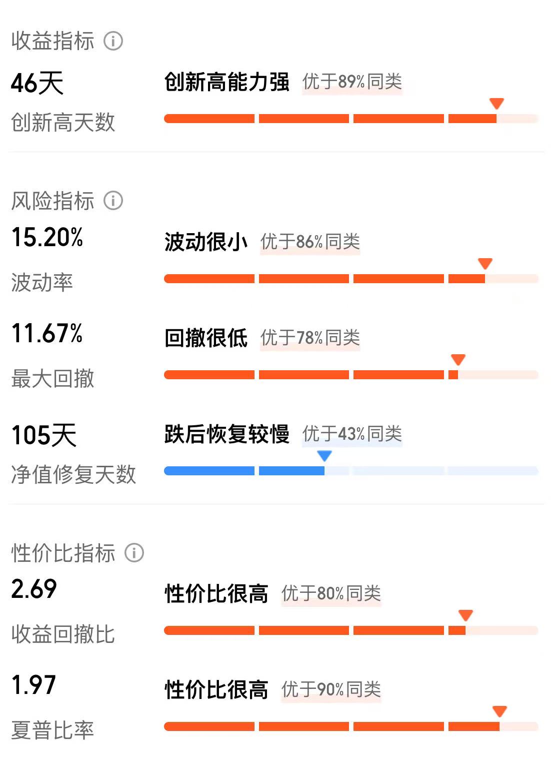 首先,基金的波动率较高。股票仓位长期维持在90%左右(高于同类平均85%-86%),导致收益波动显著。截至2025年Q3,基金近一年夏普比率为1.97,表明其每单位波动率所获得的超额收益相对合理,但波动率本身较高。