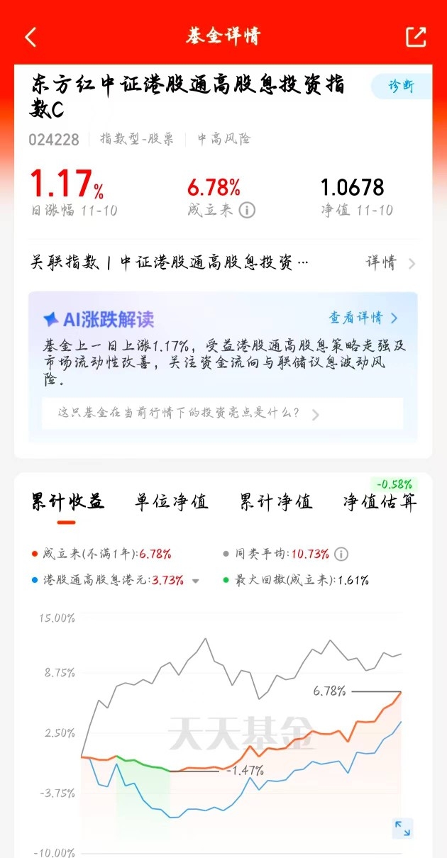 这只东方红产品紧密跟踪指数,相当于一键打包一篮子高息股,风险相对可控。近一月表现挺稳,涨了近8%,回撤极小。现在申购还0费率,市场低位正是慢慢布局的好时机。
