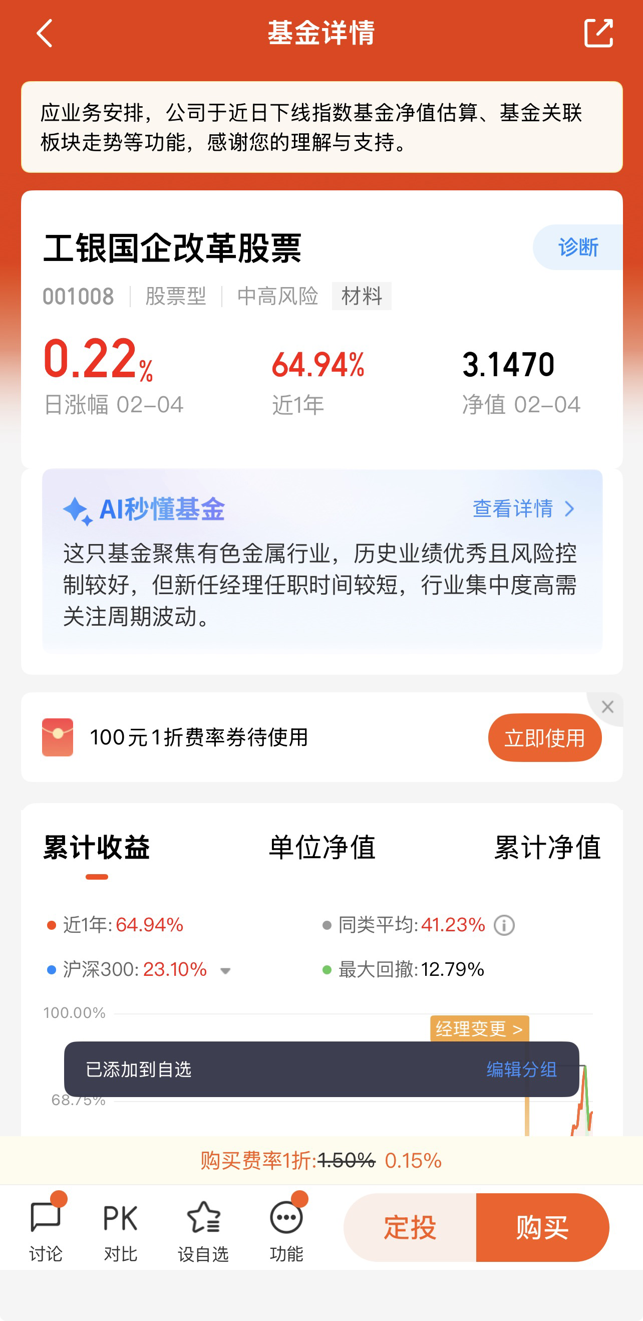 尽管国企改革板块近期积累了一定涨幅,但整体估值分位数仍相对较低,尤其是有色等重点布局领域,估值优势显著,具备较大的修复空间与上涨潜力,属于“低估值+高成长”的优质赛道,买入成本可控,长期配置性价比突出。同时,基金净值表现稳健,截至2026年2月,净值处于合理区间,未出现过度泡沫化,适合中长期布局。