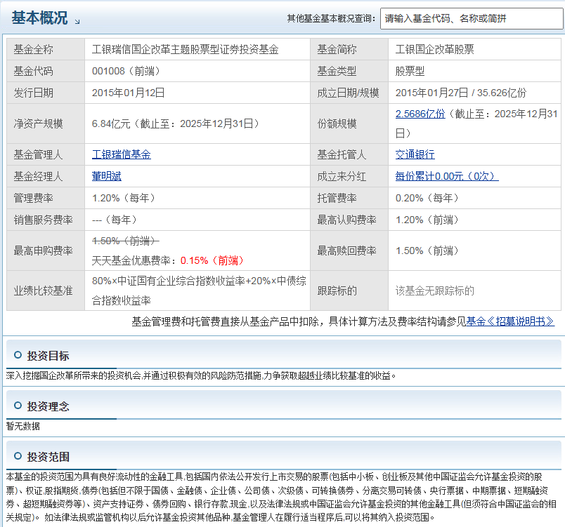 骑牛看熊比较看好工银国企改革股票(001008)是工银瑞信基金管理有限公司发行的标准股票型基金(中高风险),核心聚焦国企改革主题投资,以下从投资优势、上车逻辑、适配投资者三大核心维度,结合最新基金数据与市场趋势,进行详细拆解,兼顾专业性与易懂性。