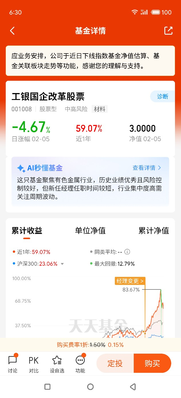 基于对有色金属板块的坚定看好,也基于对工银国企改革股票基金投研实力和调仓策略的认可,我不仅将这只基金加入自选,还早早创建了定投计划。在我看来,定投是普通投资者把握赛道长期机遇的最佳方式之一,既能平摊成本、降低市场短期波动的影响,又能长期分享板块和基金的成长收益。对于2026年的有色金属板块,我认为这不是短期的行情炒作,而是具备基本面支撑的长期景气行情,而工银国企改革股票基金凭借精准的赛道布局、专业的投研管理,势必能抓住板块的投资机遇,为持有人创造良好的收益。