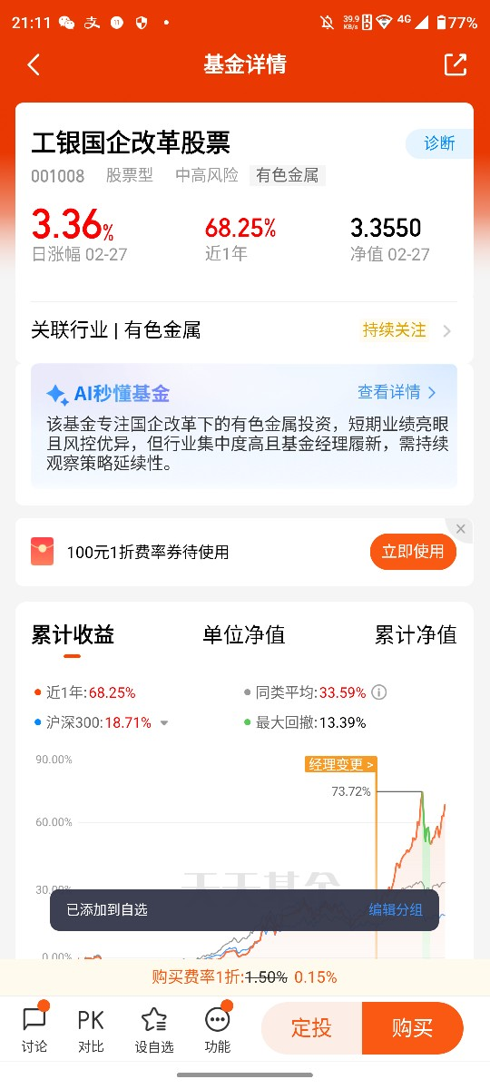 对普通投资者来说,直接买个股难度很大。有色个股波动大、分化明显,有人赚有人亏,选股需要专业知识,普通人很容易踩雷、追高被套。而且有色细分领域多,工业金属、新能源金属、小金属、贵金属轮动快,普通人跟不上节奏。这时候借道主动基金布局,是更稳妥、更省心的选择,工银国企改革股票就是贴合当前有色行情、聚焦优质龙头的合适工具。