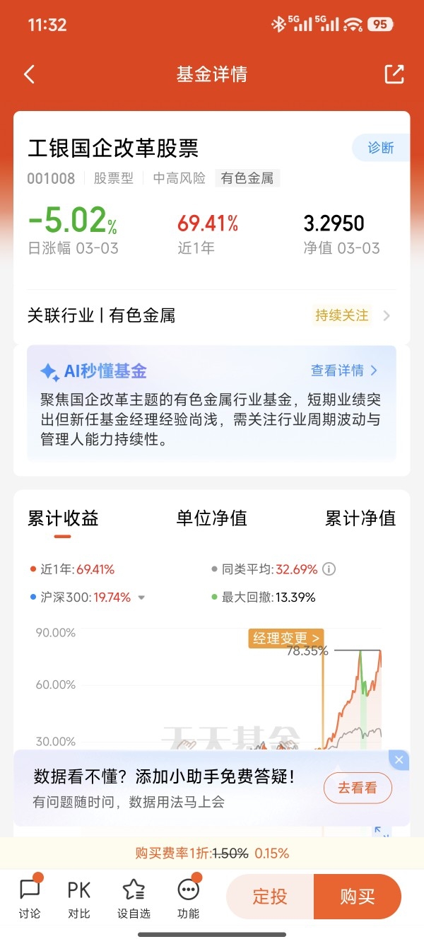 最初买这只基,其实是冲着“国企改革”的名头去的,想着稳一点,结果打开季报一看直接懵了,满屏的有色标的,当时还纠结过是不是风格漂移了,甚至想过割肉离场。现在回头看,这才是基金经理最聪明的地方:2026年的国企改革,核心早就不是简单的混改重组,而是资源安全、关键矿产自主可控,这也是国家战略的核心方向。中国五矿、中国稀土的重组整合,有色国企的绿色转型,这些都是国企改革的新内涵,而这只基早早卡位,把紫金、山金这些兼具国企背景和资源优势的标的拿在手里,既是吃国企改革的红利,更是吃有色金属超级周期的双重收益,这波布局,真的太有远见了。