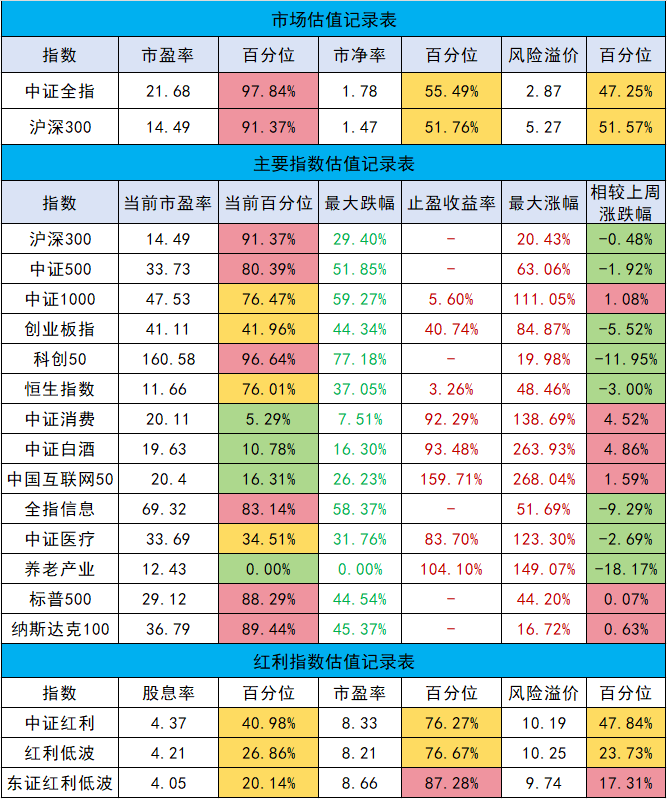 本账号每周更新市场估值周报,为指数投资提供数据支撑!欢迎关注!