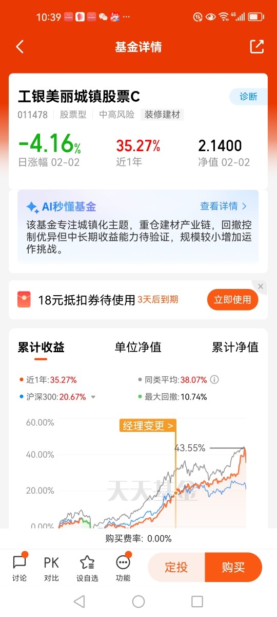 $工银美丽城镇股票A(001043)$主要投资于消费建材、家居用品等房地产开发商以外的房地产产业链各细分领域的优质龙头企业。2025年4季度收益率为4.86%,大幅跑赢沪深300指数-0.23%的收益,值得投资者关注。@工银瑞信基金